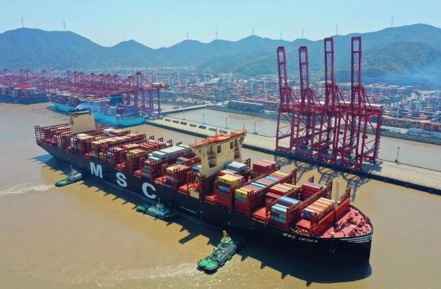 4月2日11時30分,在4艘拖輪的密切配合下,最大載箱量24346標準箱的新晉全球最大集裝箱船“地中海伊琳娜”輪(MSC IRINA)穩穩靠上寧波舟山港穿山港區集裝箱碼頭4號泊位,意味著寧波舟山港時隔僅17天后,再次刷新了“最大集裝箱船”掛靠紀錄,彰顯了貨物吞吐量世界第一大港的全球重要樞紐港地位。